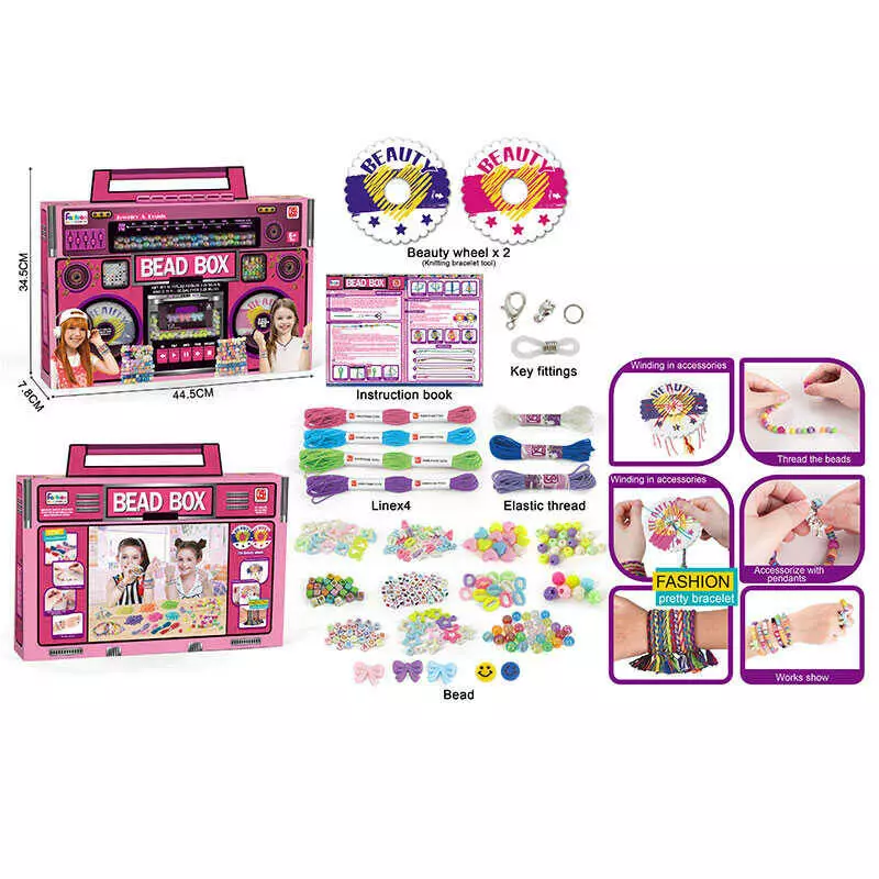 Набір бісеру 924 (36/2), нитки, фурнітура, 8 видів бусин, 3 еластичні основи для браслетів, 2 інструменти для плетіння, в коробці