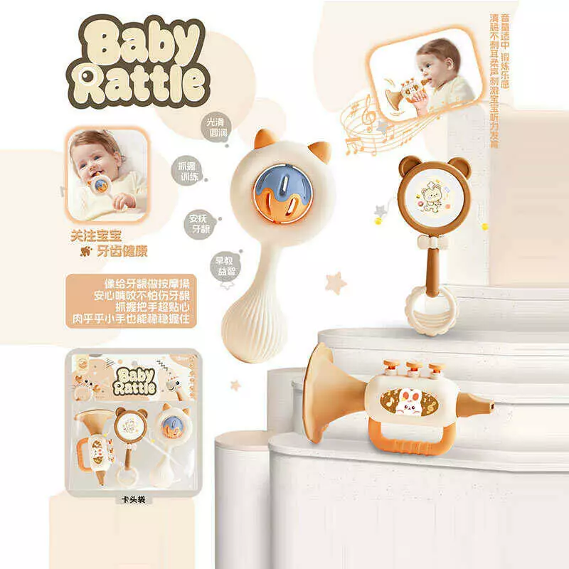 Набір брязкалець 2519 (180) 3 іграшки, барабан-колотушка, труба, гумові прорізувачі, кульки, в пакеті