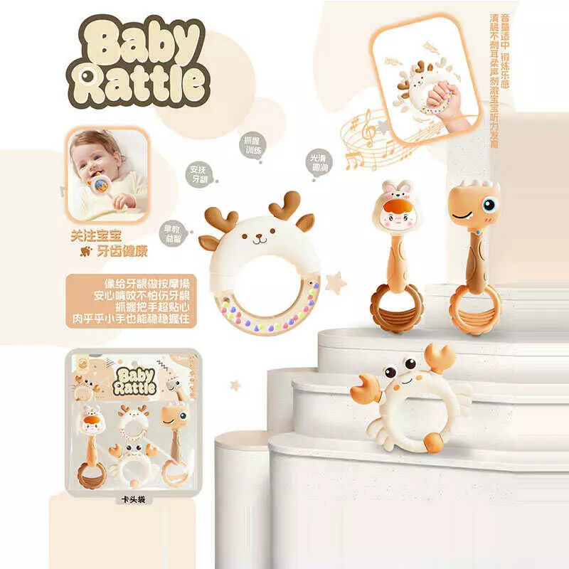 Набір брязкалець 2520 (180) 4 іграшки, гумові прорізувачі, кульки, клешні краба обертаються, в пакеті