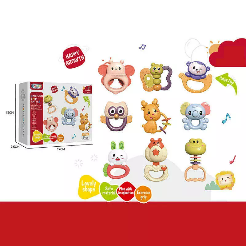 Набір брязкалець 368-83 (72) звірятка, 9 елементів, намистини, гумові прорізувачі, рухомі елементи, в коробці