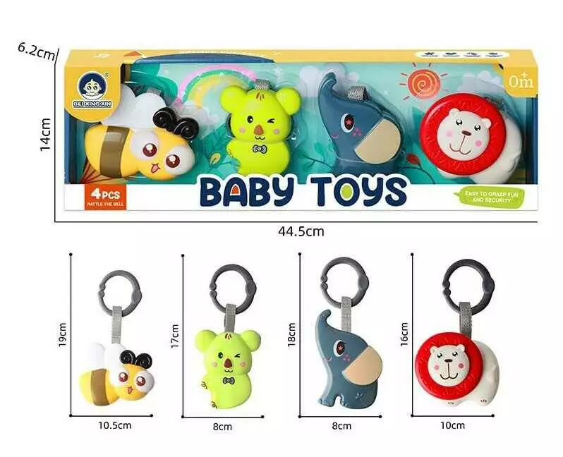 Набір брязкалець 977-1 (60/2) 4 штуки, рухливі елементи, можна підвісити, в коробці