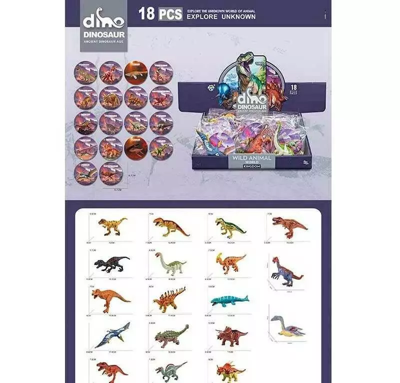 Набір динозаврів JS 35-3 (18) ЦІНА ЗА 18 ШТУК В БЛОЦІ, картки із назвами, в коробці