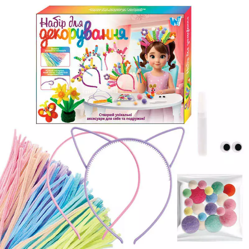Набір для декорування 41755 (48/2) "WToys", 2 обручі, м`які стрижні, клей, аксесуари, в коробці