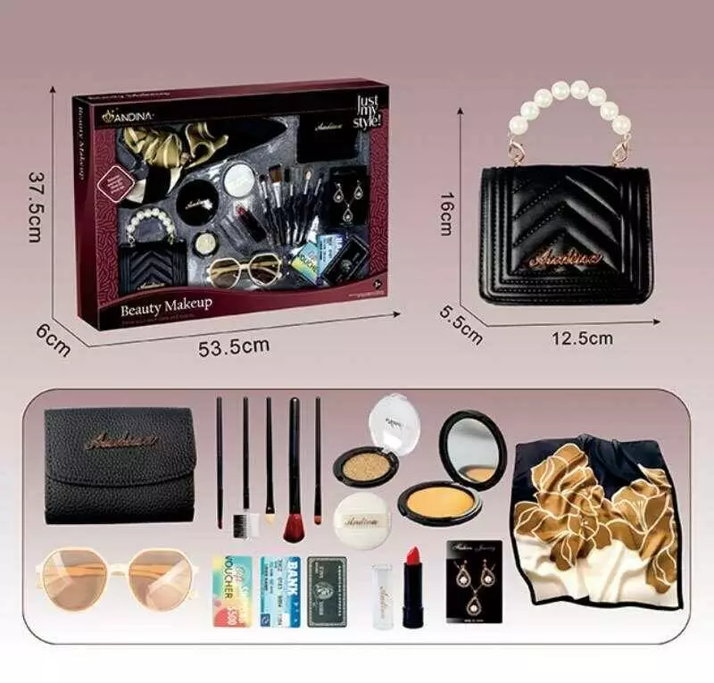 Набір аксесуарів 676-3 (24) хустинка, сумочка, імітація косметики, окуляри, набір пензлів для макіяжу, аксесуари, гаманець, банківські картки, в короб