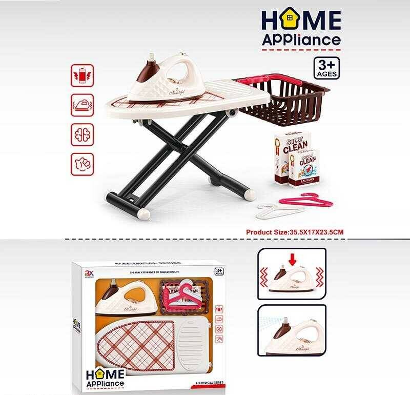 Набір для прасування 6932 A (22/2) праска на батарейках, імітація роботи праски, спрей, дошка для прасування, кошик, аксесуари, в коробці