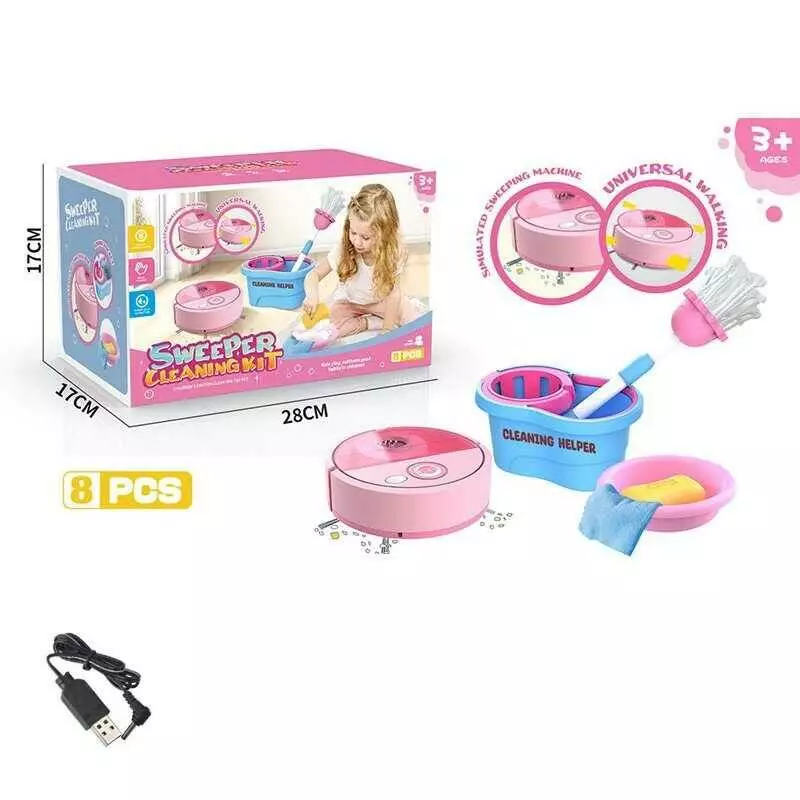 Набір для прибирання 398-7 (24) 10 предметів, пилосос працює від акумулятора 3.7 V, USB-зарядка, швабра, тазик, в коробці