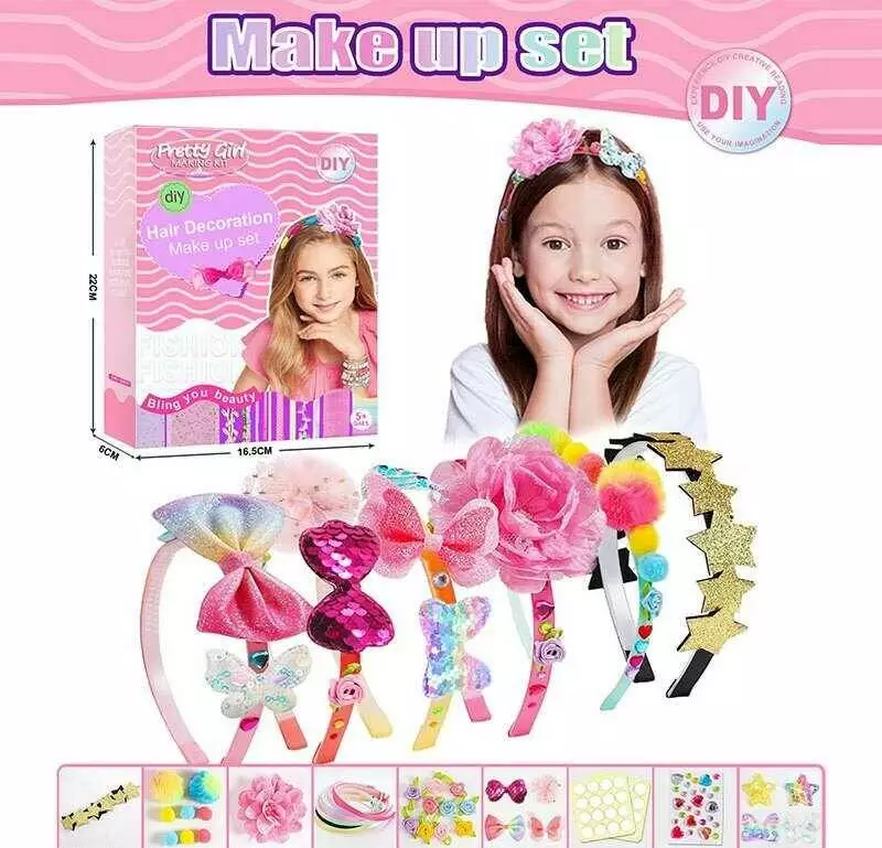 Набір прикрас L 5303 (120/2) 6 обручів, декоративні текстильні елементи, двосторонні наліпки-фіксатори, в коробці