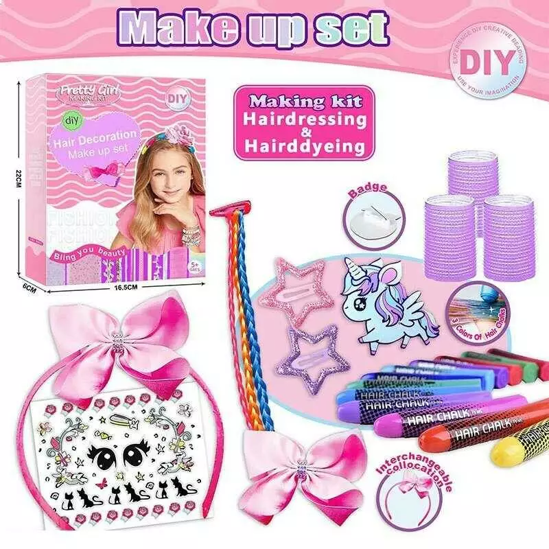 Набір прикрас L 5305 (120/2) 3 олівці з м`якими стрижнями, прикраса для волосся, м`які бігуді, заколки, наліпки, в коробці