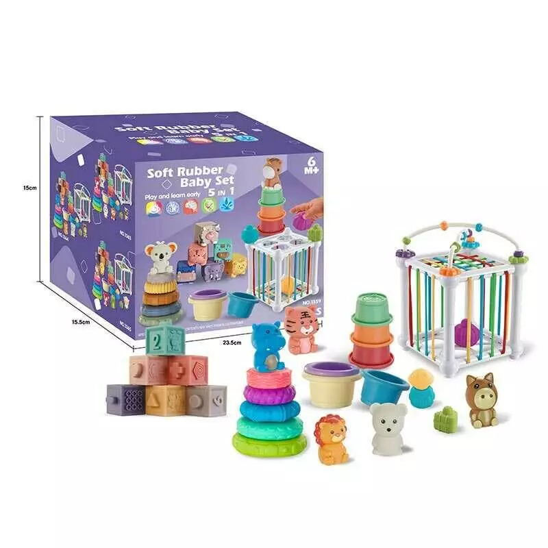 Набір для розвитку 1364 (18) пальчиковий театр, пірамідка, пірамідка з чашечок, кубики, куб із формами, ігри із намистинами, в коробці