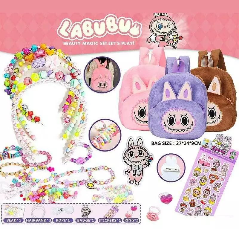 Набір для створення прикрас L 5255 (120/2) 3 види, намистини, ліска, основи для обідків, каблучки, наліпки, рюкзак, в пакеті, ВИДАЄТЬСЯ ТІЛЬКИ МІКС ВИ