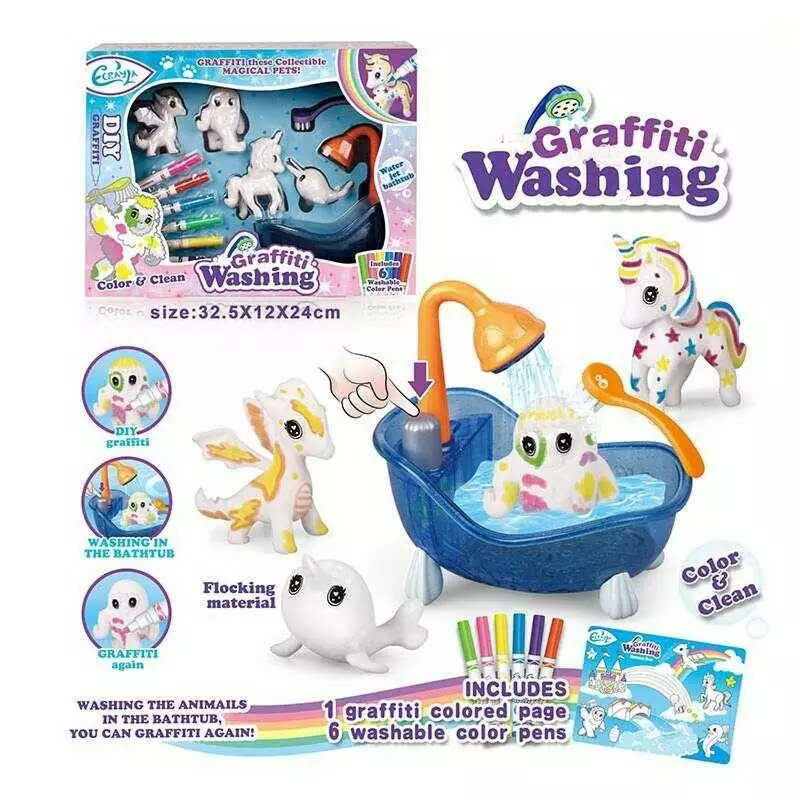 Набір для творчості 804 (24) 4 флоксові фігурки тварин, помпова подача води, 6 кольорових фломастерів, ванночка, щіточка, в коробці