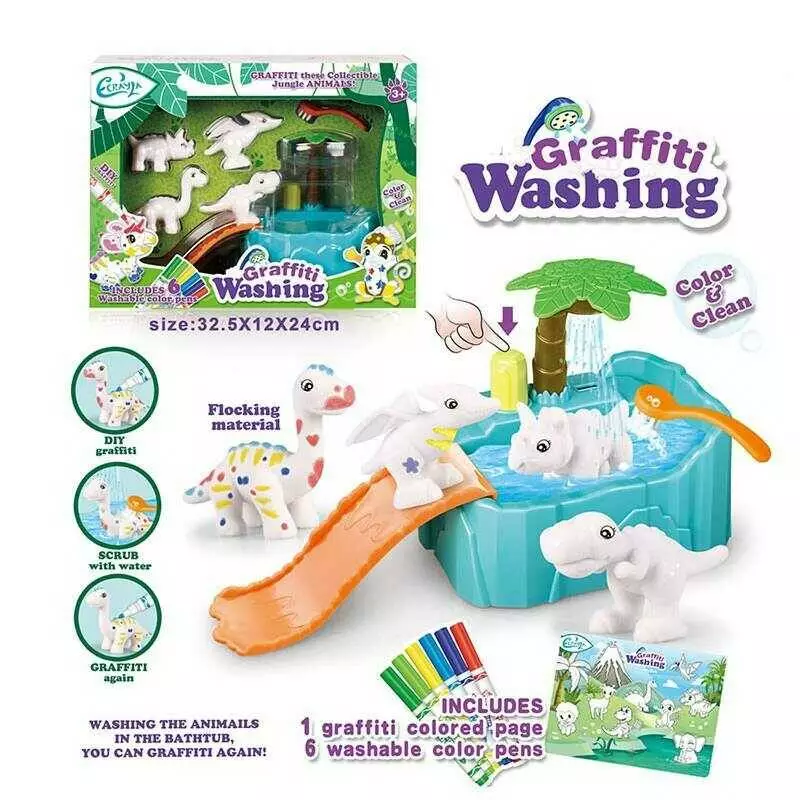 Набір для творчості 806 (24) 4 флоксові фігурки тварин, помпова подача води, 6 кольорових фломастерів, ванночка з гіркою, щіточка, в коробці