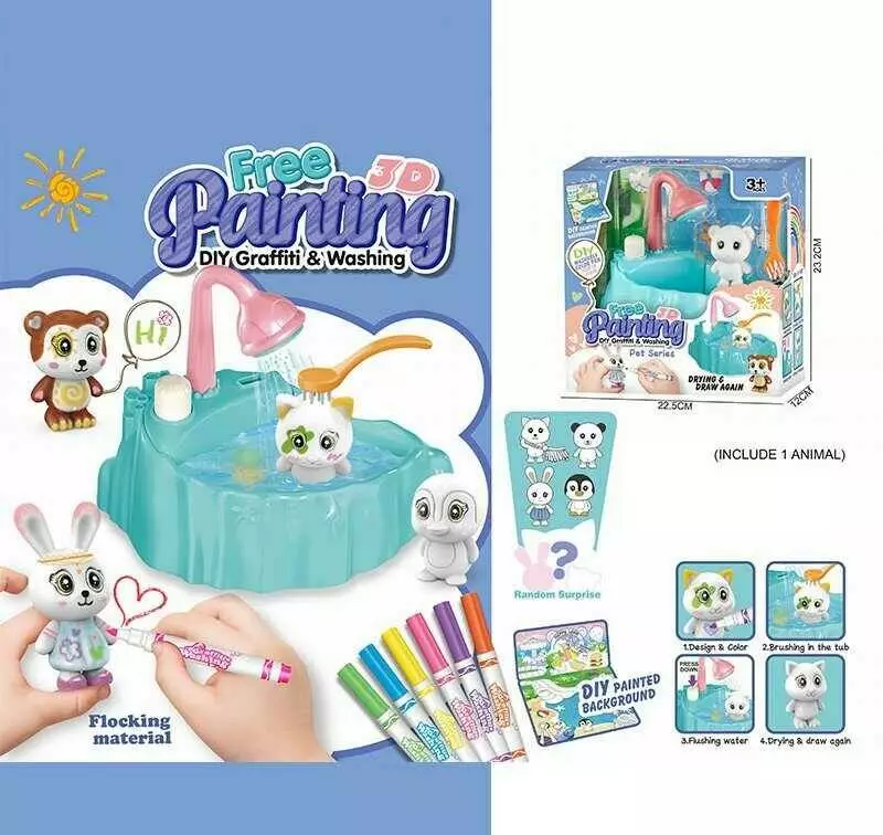 Набір для творчості 821 (48/2) флоксова фігурка тварини, помпова подача води, 6 кольорових фломастерів, ванночка, щіточка, в коробці