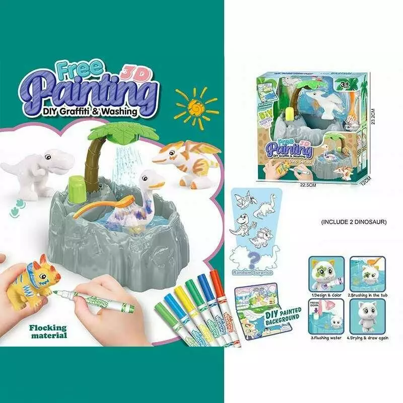 Набір для творчості 827 (48/2) 2 флоксові фігурки тварин, помпова подача води, 6 кольорових фломастерів, ванночка, щіточка, в коробці