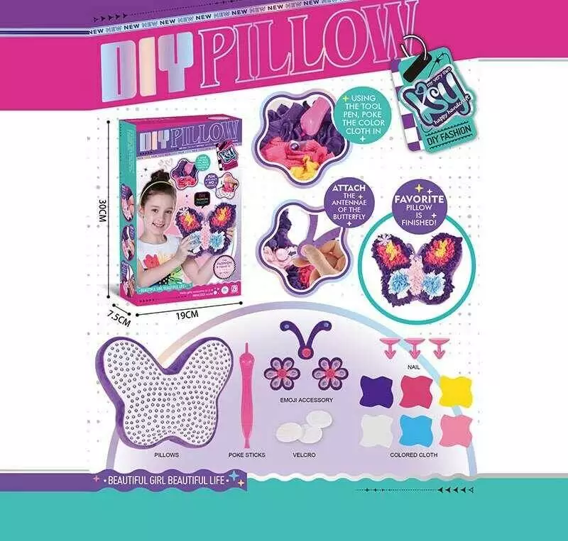 Набір для творчості "Прикрась подушку" KSY 975 (60/2) фігурна основа, стилус, клаптики тканини, декоративні деталі, липучки, в коробці