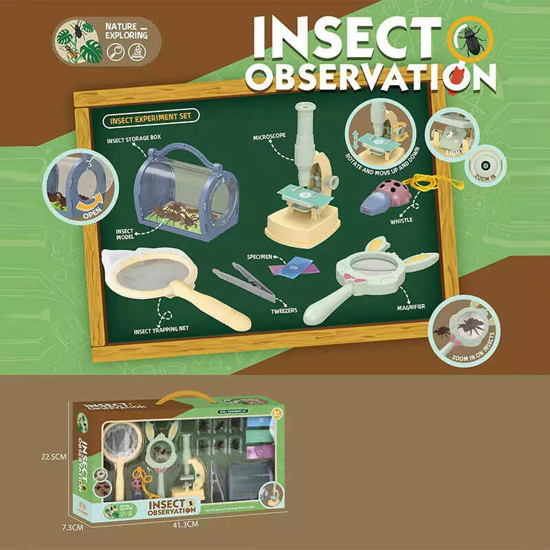 Набір дослідів W 612 (48/2) мікроскоп на батарейках, підсвітка, лупа, сачок, пінцет, моделі комах, в коробці