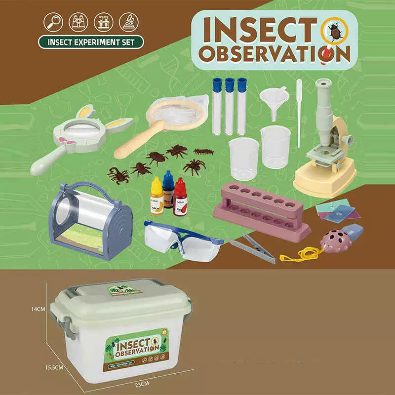 Набір дослідів W 616 (48) мікроскоп на бат, пробірки, пінцет, лупа, сачок, флакони з "реактивами", наукові аксесуари, моделі комах, окуляри, в боксі