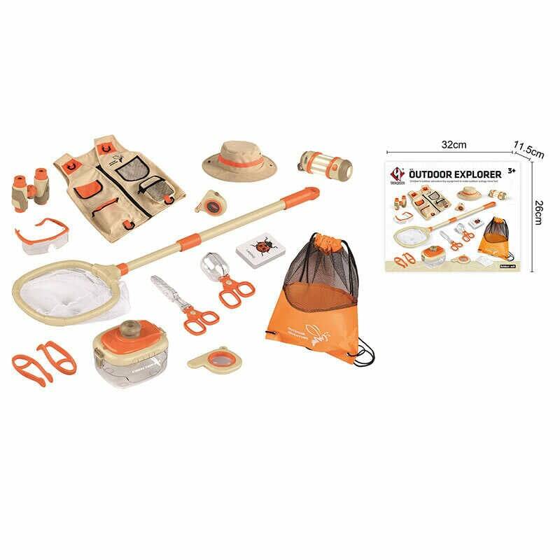 Набір дослідника YS 001 A (24) ліхтарик на батарейках, лупа, сачок, контейнер, ножиці, жилет та капелюх, сумка, бінокль, в коробці