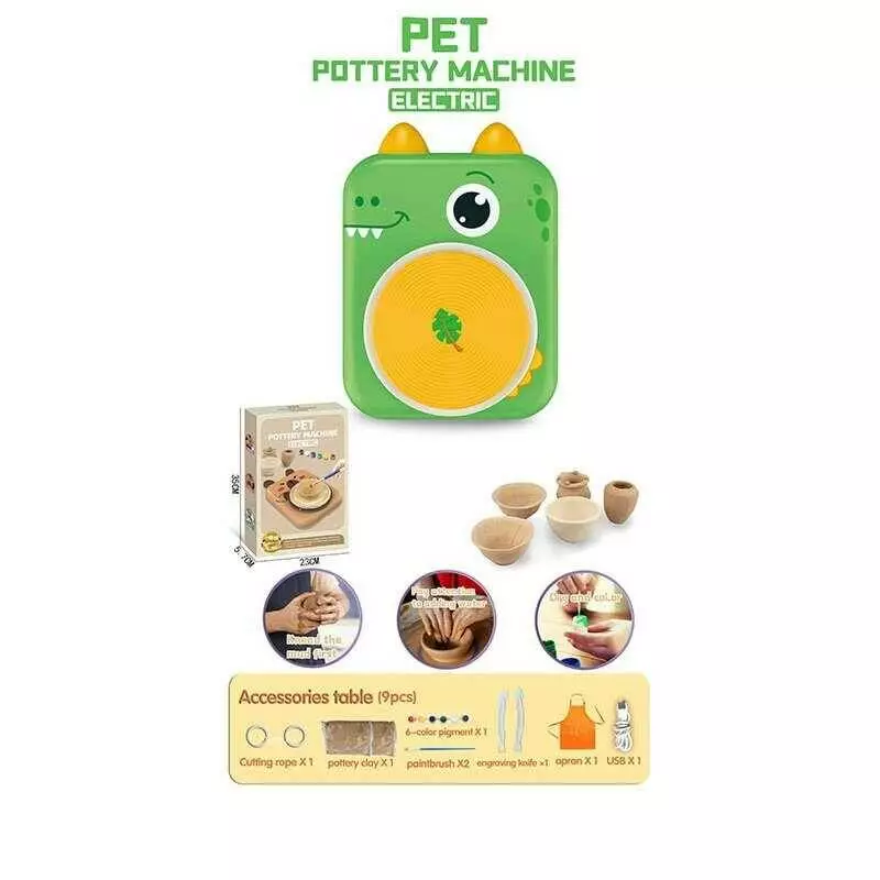 Набір для гончарства 8825 (30) електричний гончарний круг, працює від мережі, глина, фартух, фарби, інструменти, в коробці