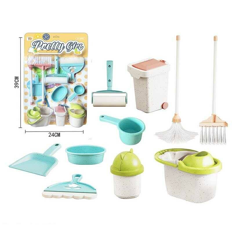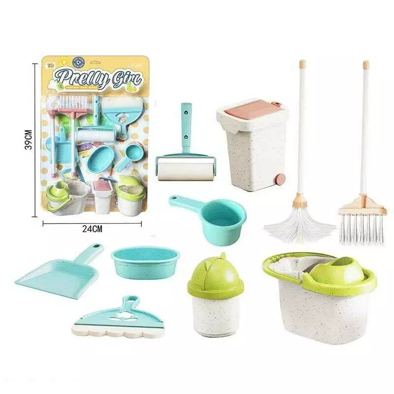 Набір господарки YY 222 (144/2) 10 елементів, 3 відра, ківш, таз, швабра, віник, совок, валик, шпатель, рухомі елементи, на листі