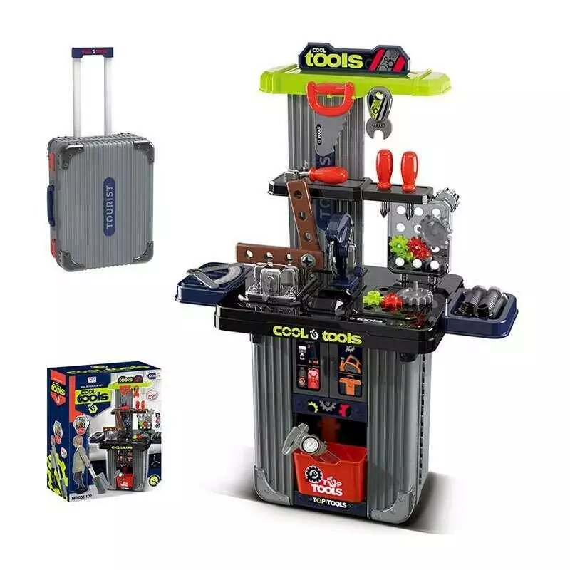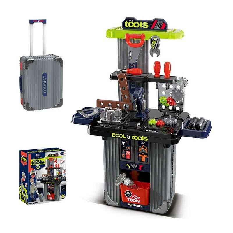 Набір інструментів 008-102 (8) верстат, валіза, молоток, тиски, пилка, викрутки, гайковий ключ, болти, в коробці