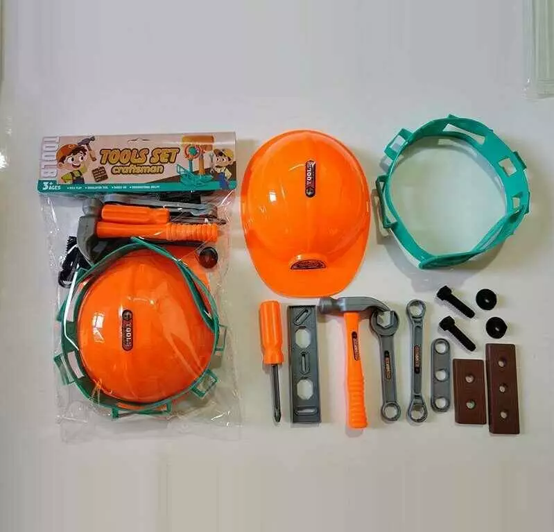 Набір інструментів 128-5 (96/2) каска, молоток, пояс, гайковий та накидний ключі, 2 гвинти, 2 з’єднувальні пластини, в пакеті