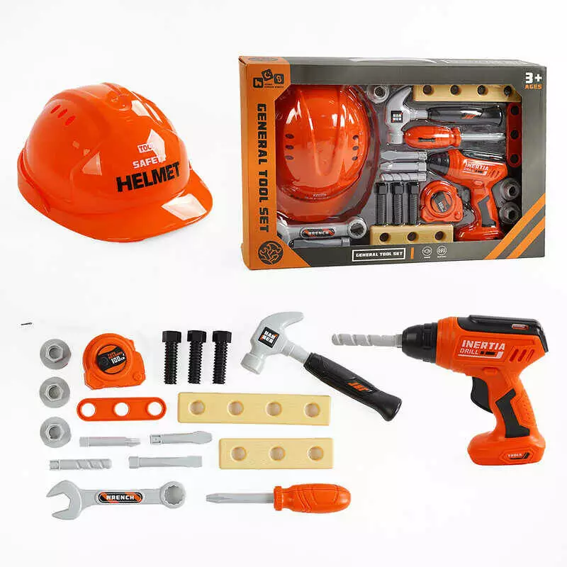 Набір інструментів 778-29 (36/2) 19 елементів, механічний дриль, будівельна рулетка, каска, в коробці