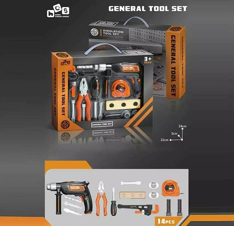 Набір інструментів 778-90 (72/2) 14 елементів, дриль, розвідний ключ, плоскогубці, викрутка, рулетка, в коробці