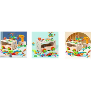 Ігровий центр C 65657 (12) дерев’яний, інструменти, ящик, столярний верстак, електричний шуруповерт, каталка, конструктор, в коробці