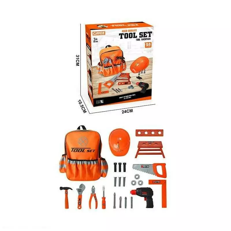Набір інструментів KY 1068-33 (24/2) рюкзак, каска, автомат. дриль, знімні насадки, стійка для інструментів, висота рюкзака - 29.5см, в коробці