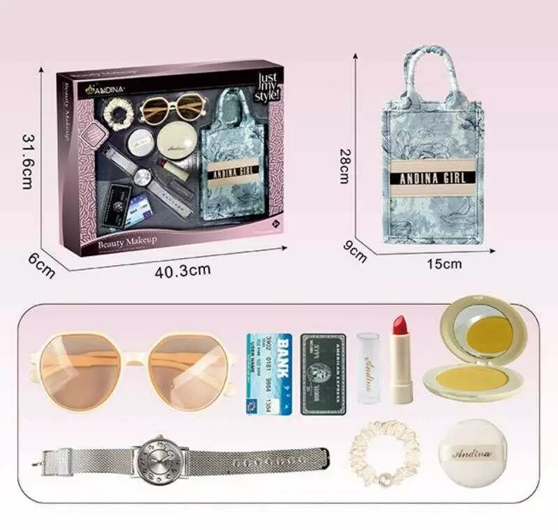 Набір аксесуарів 656-3 (36) сумочка, імітація косметики, функціональний годинник, окуляри, резинка, імітація карток, в коробці