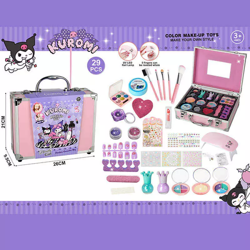 Набір косметики 768-72 C (48/2) тіні, глітер, блискітки, щітка для волосся, аксесуари для манікюру, лак, олівець, блиск, пензлики, лампа, у валізі