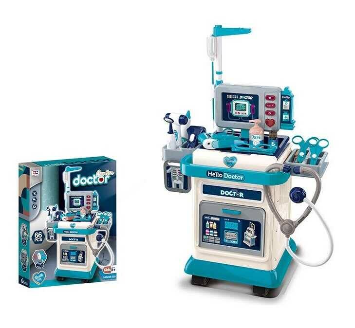 Набір лікаря 008-205 (8)медичний центр, розмір: 25х44х66 см, монітор, електричний термометр, звук, підсв., сканер, стетоскоп, ліки, інструм, в коробці