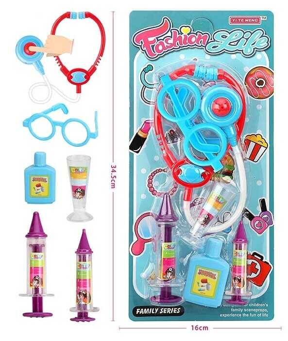 Набір лікаря 58721 (108/2) стетоскоп, 2 шприци, ліки, окуляри, на листі