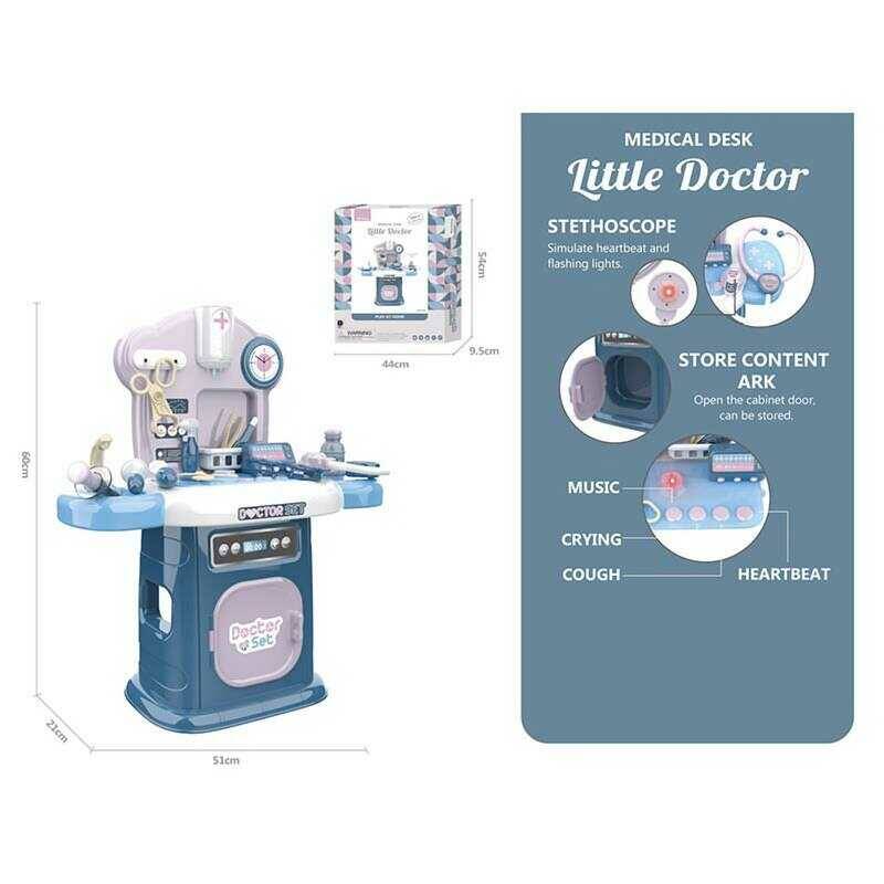 Набір лікаря 661-509 (6) столик, 26 елементів, звуки, плач, підсвічування, мелодії, медичні інструменти, стетоскоп, звук серцебиття, в коробці