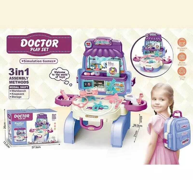 Набір лікаря 828-48 (18) стетоскоп, мікроскоп, монітор, шприц, 2 термометри, ножиці, пляшечка ліків, в коробці