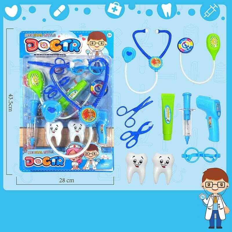 Набір лікаря 8321 (72/2) стетоскоп, термометр, тонометр, шприц, ножиці, 2 зуби, тюбик пасти, окуляри, на листі