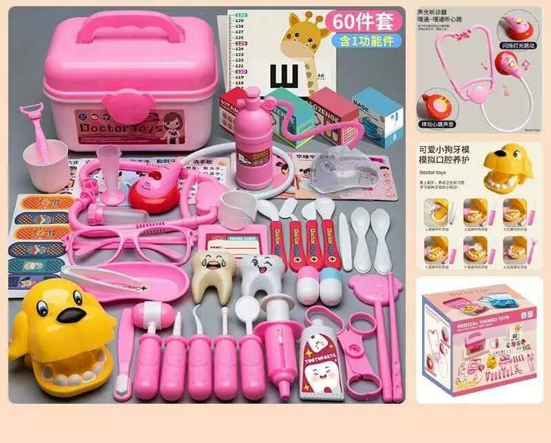 Набір лікаря 839-020 (72) 60 елементів, підсвічування, звук, стетоскоп, інструменти дантиста, валізка, модель зубів, в коробці