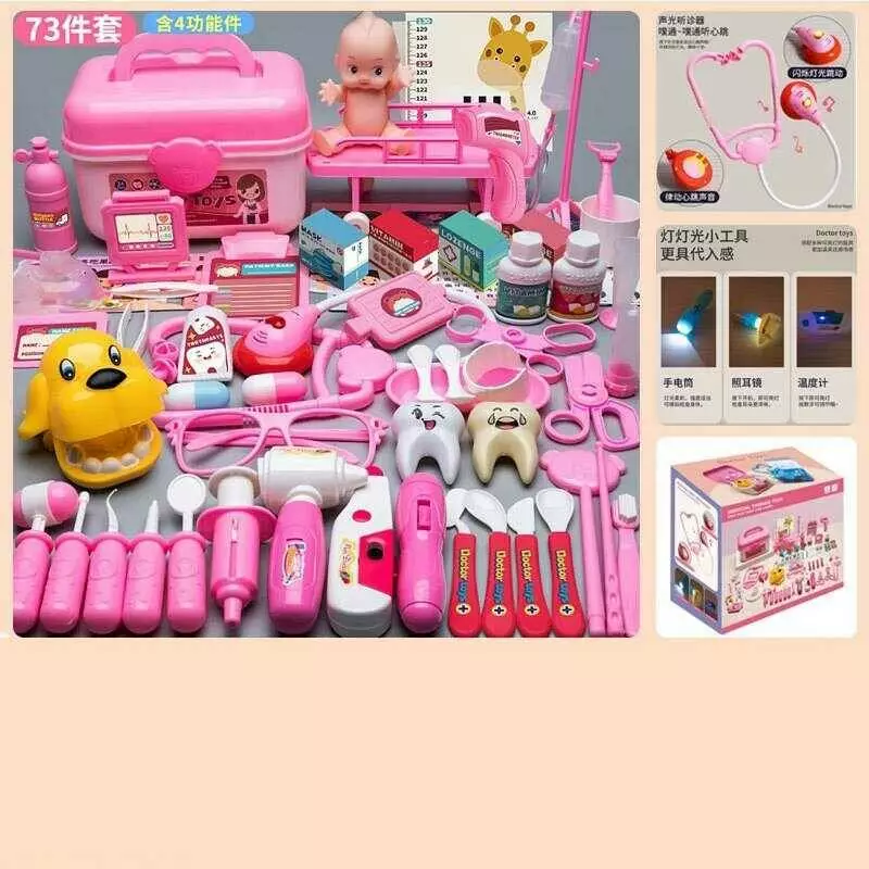 Набір лікаря 839-021 (48) 2 види, 73 ел, пупсик, бокс, окуляри, стетоскоп, звук серцебиття, підсвіч, термометр, молоточок, мед. приладдя, в коробці