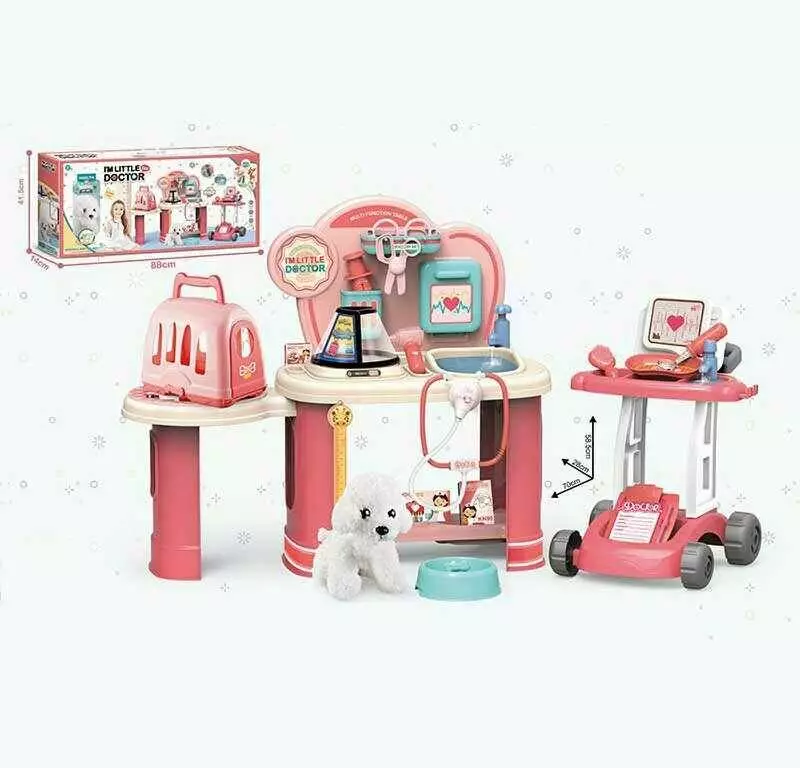 Набір лікаря 8836 A-2 (8) звук, підсвічування, столик з поличками 70х28х58.5 см, візок, переноска, собачка, інструменти лікаря, наліпки, в коробці