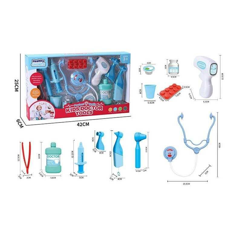 Набір лікаря A 82-1 (48/2) бормашина вібрує, заводний механізм, термометр, стетоскоп, пінцет, шприц, таблетки, баночки, в коробці