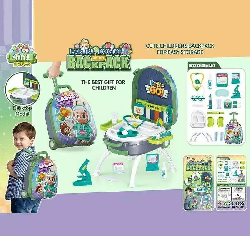 Набір лікаря DL 9971 (36/2) герой, аксесуари лікаря, стетоскоп, шприц, окуляри, ігрова платформа, висувна ручка, ремінець, на колесах, у валізі