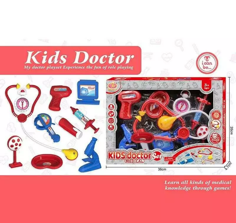 Набір лікаря KJ 1922 A-1 (60/2) стетоскоп, термометр, шприц, мікроскоп, інструменти, в коробці