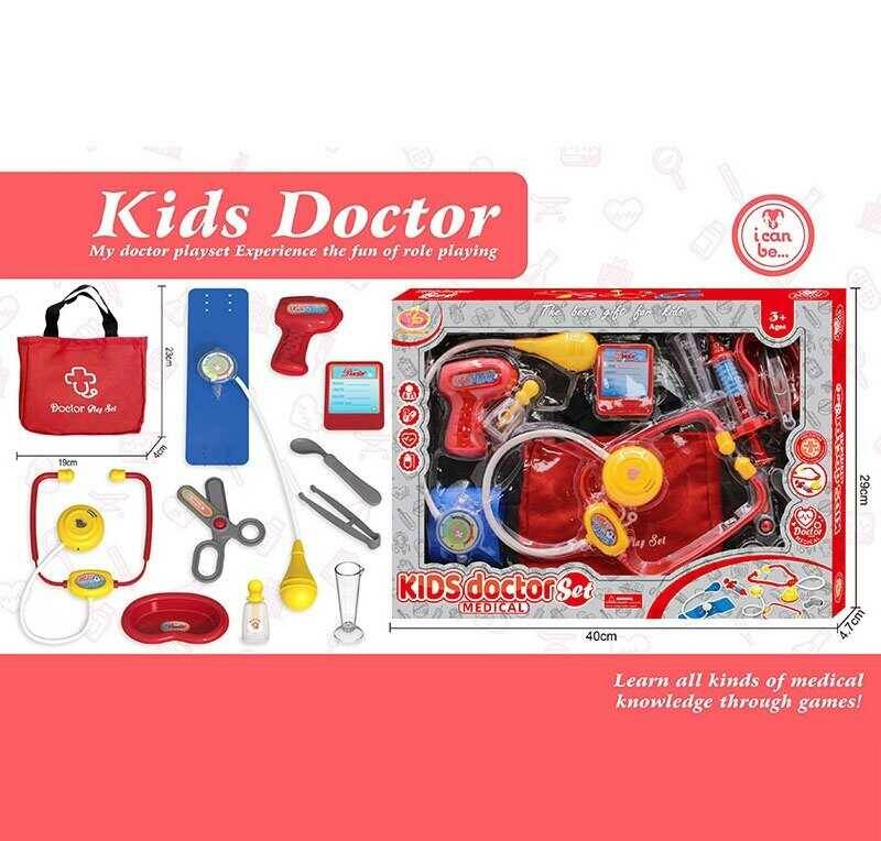 Набір лікаря KJ 1923 A-9 (48/2) сумка, стетоскоп, термометр, тонометр, тарілочка, планшетка, стаканчик, в коробці
