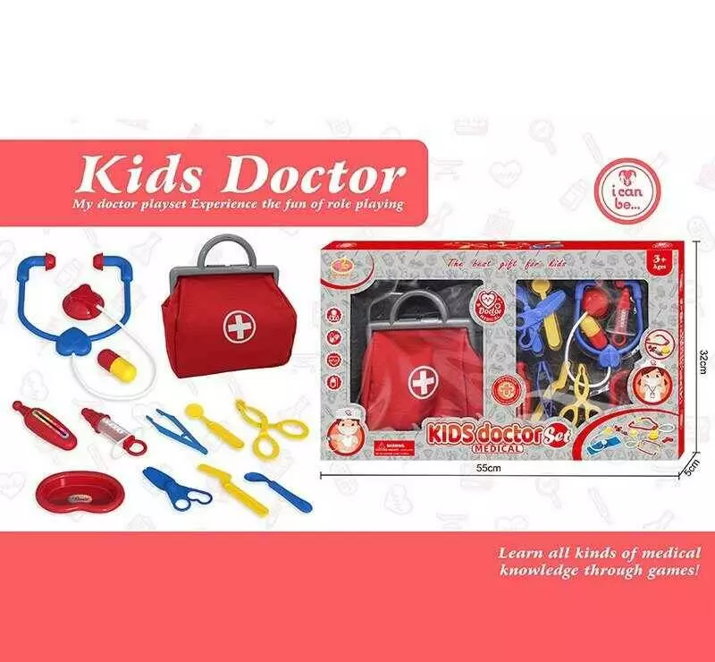 Набір лікаря KJ 1927 A-5 (36/2) стетоскоп, термометр, шприц, пінцет, ножиці, хірургічний ніж, таця, пігулка, сумка, в коробці
