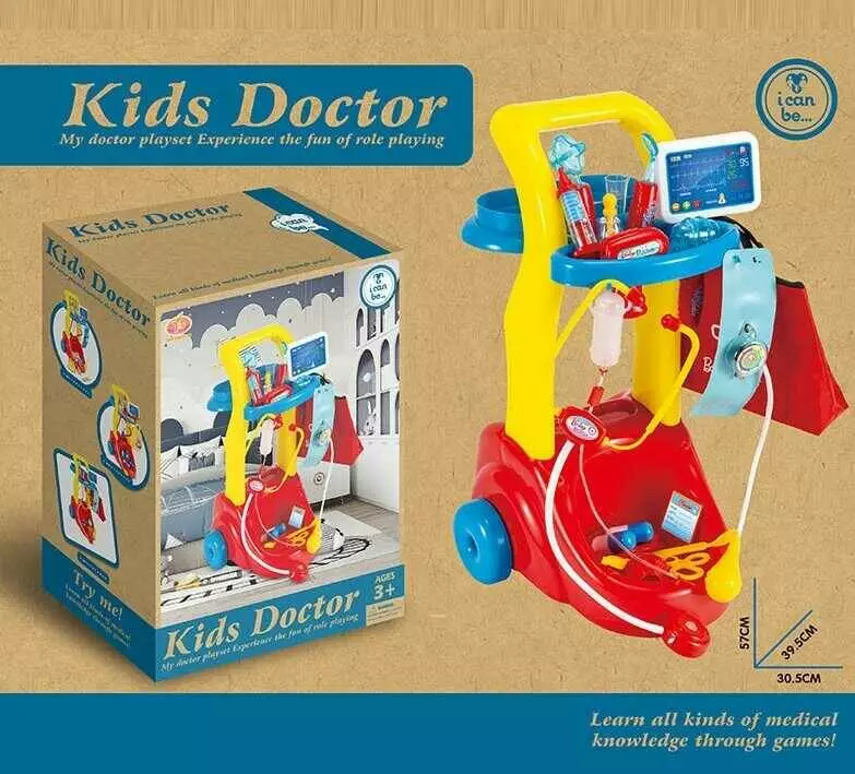 Набір лікаря KJ 1936 A-3 (12/2) світло, звук серця, висота візочка 57 см, медична сумка, стетоскоп, крапельниця, шприц, тонометр, отоскоп, в коробці