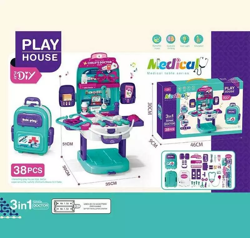 Набір лікаря T 2158-3 (24/2) медичний столи, озвуч. англійською мовою, набір інструментів, стетоскоп, термометр,шприц,ножиці,на батарейках, в коробці