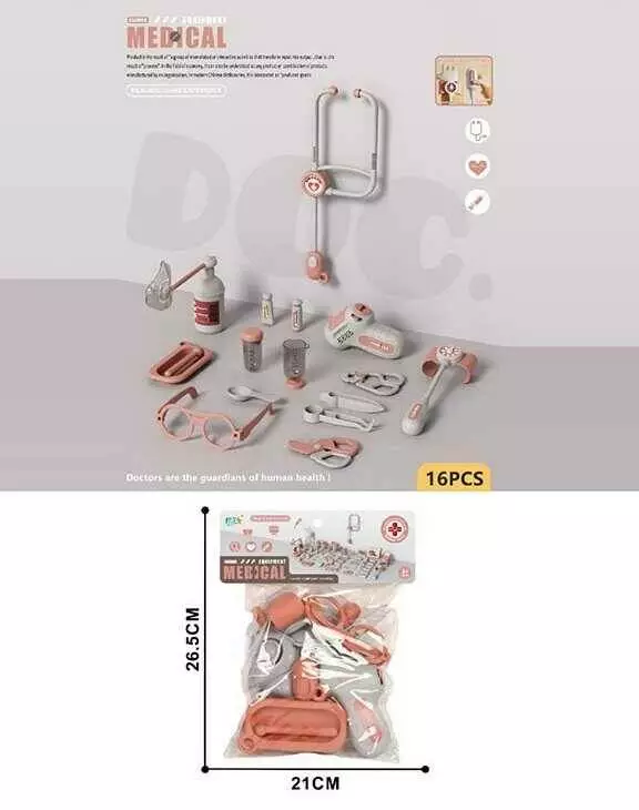 Набір лікаря YJ-H 1-34 (144/2) 16 елементів, термометр, окуляри, пляшечки, ножиці, в пакеті