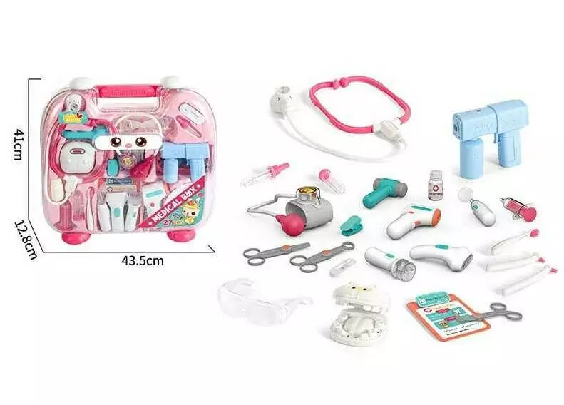 Набір лікаря YY 6033 (8) стетоскоп, світло, звуки, ліхтарик, оглядове дзеркало, термометр, апарат УЗД, пістолет з парогенерацією, аксесуари, у валізі