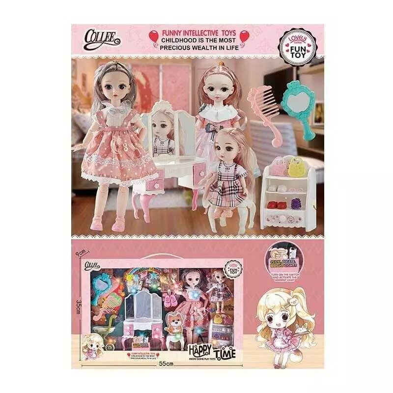 Набір ляльок 2027-12 (18) 2 ляльки, шарнірні суглоби, імітація скляних очей, підсвічування, аксесуари, велосипед, в коробці